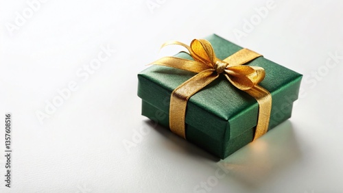 Minimalist Green Gift Box with Gold Bow - Isolated on White Background