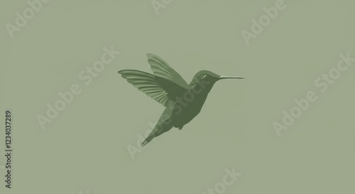 Minimalist Hummingbird Illustration on Green Background, Perfect for Nature-Themed Design Projects and Eco-Friendly Branding.