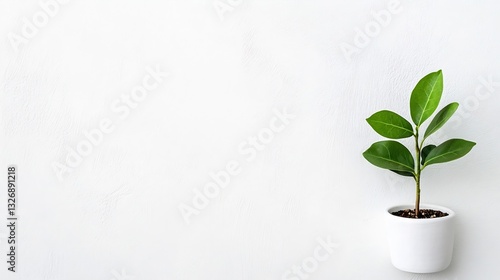 Minimalist indoor plant in elegant white pot on a light background representing tranquility and nature : Generative AI