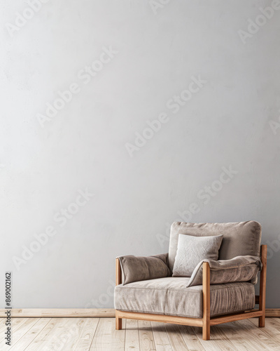 Minimalist interiors in a luxury property with minimal furniture, balanced lighting and copy space for text. Residential Real Estate interiors design composition in neutral colors.