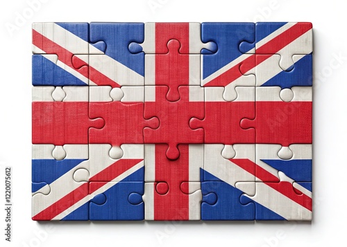 Minimalist Jigsaw Puzzle: British Flag Completed on White Background
