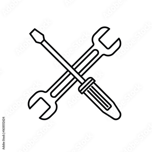 Minimalist Line Art of Crossed Screwdriver and Wrench Symbolizing Repair Tools