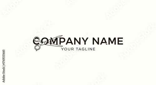 Minimalist Logo Design Featuring Scissors Cutting Company Name Text.