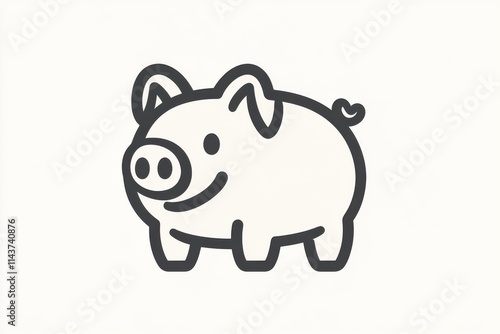 Minimalist piggy bank icon white and black outline simple design flat graphic