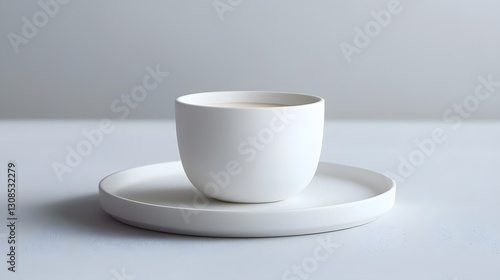 Minimalist Presentation of a Flat White Coffee in a Simple White Bowl Arrangement