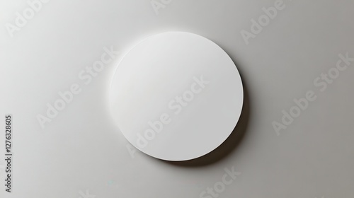 Minimalist round white wall clock on grey background with shadow