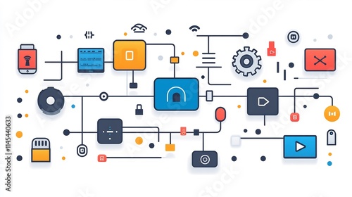 Minimalist technology trends infographic featuring clean icons and sleek lines isolated on a transparent background for tech blogs
