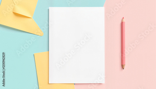 Minimalist White Paper on Pastel Colored Background with Copy Space