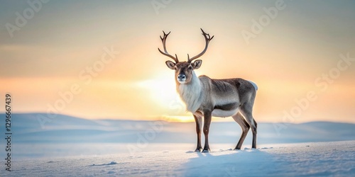 Minimalist Winter Wonderland: Reindeer in Snowy Landscape
