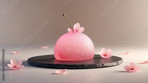 Minimalist Zen Cherry Yokan Jelly with Sakura Petals