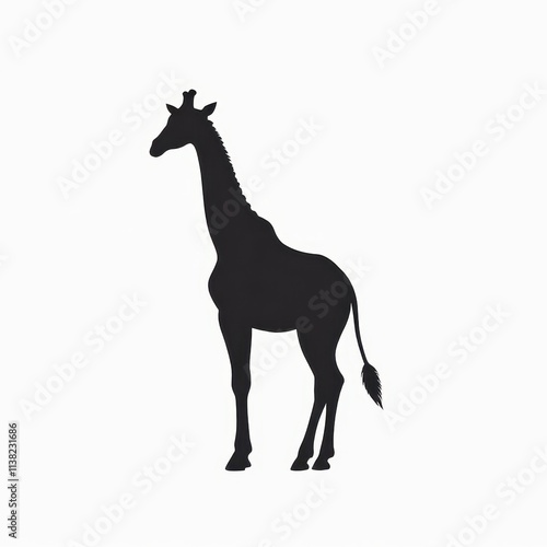 Minimalistic 2D giraf silhouette in solid color, set against a clean, transparent background