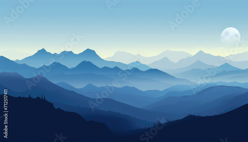 Minimalistic blue mountains background