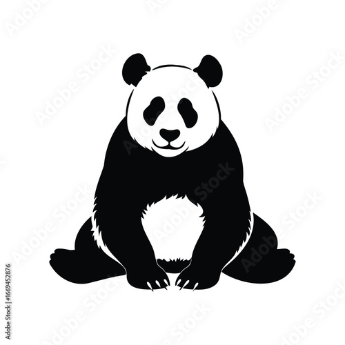 Minimalistic Illustration of a Sitting Panda Bear in Black and White Style, panda resting silhouette vector illustration