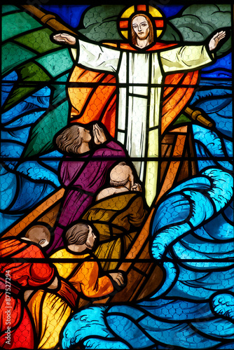 Miracle of Jesus: the storm appeased. Christian Bible.Miracle de Jésus : la tempête apaisée. Bible chrétienne.