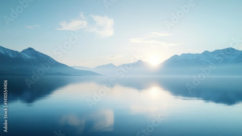 Misty Mountains and Still Lake Reflect a Brilliant Sunrise