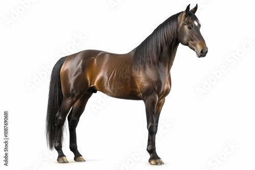 Mixed breed of Spanish and Arabian Full body horse, 8 years old, portrait standing against white background