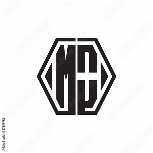 MO Logo monogram with hexagon line rounded design template on white background
