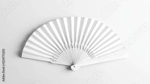 Mockup of a white folding hand fan set apart against a white background