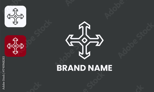Modern Arrow Directions Set, Four Way Navigation Icon, Logo Element Template, Isolated White on Black.