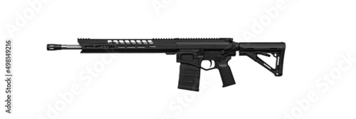 Modern automatic rifle isolated on white background. Weapons for police, special forces and the army. Assault rifle on white.