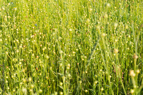 Modern background. Ripening flax close-up in the rays of the summer sun