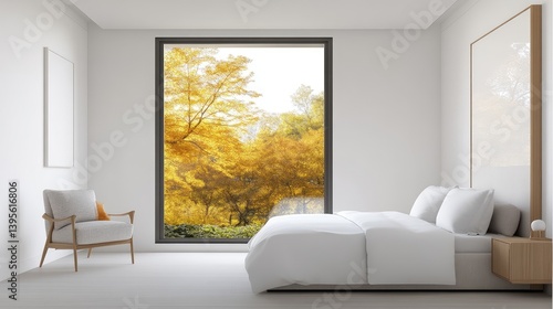 Modern bedroom with autumnal view