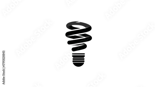 Modern Black Spiral Light Bulb Icon. Energy Saving, Eco-Friendly, Sustainable Power, Innovation, and Bright Idea Symbol
