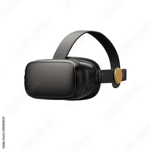 Modern black VR headset with sleek design on transparent background, representing virtual reality technology