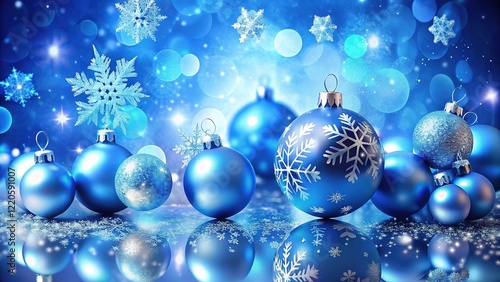 Modern Blue Christmas Background Snowflakes Balls Elegant Greeting Card Happy New Year