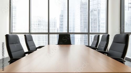 Modern Boardroom for Strategic Planning Session with Large Windows