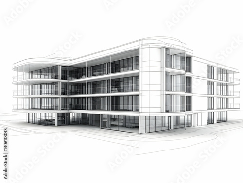 Modern Building Architectural 3D Wireframe Design
