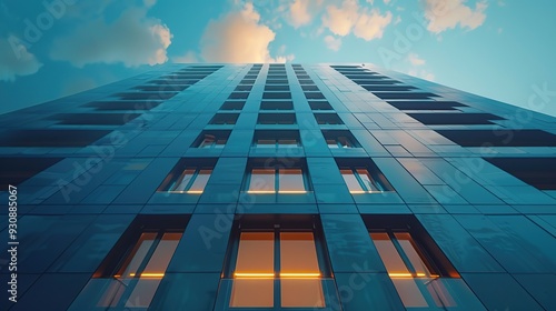 Modern Building Facade with Sky and Clouds