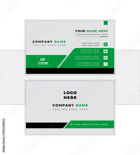 Modern business card template with green,black & white colors. vector abstract creative Stock Vector