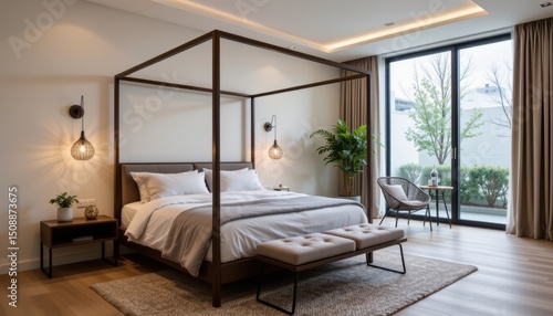 Modern Canopy Bed in Elegant Bedroom with Natural Light and Contemporary Interior Design