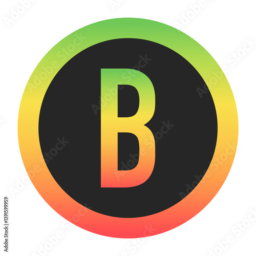 Modern Capital Letter B design with a red-to-green gradient border on a black background. Ideal for branding, logos, or minimalist design projects.