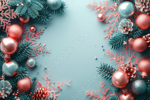 Modern Christmas Wreath with Blue and Pink Ornaments on Pastel Background
