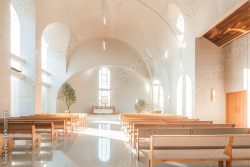 Modern Church Interior with Natural Daylighting and Arched Architecture - Design for Print, Card, Poster