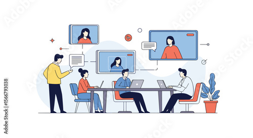 Modern collaboration in a diverse office environment utilizing technology for effective communication and project management