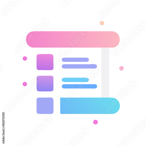 Modern data table icon with soft color gradients, flat design, digital interface concept