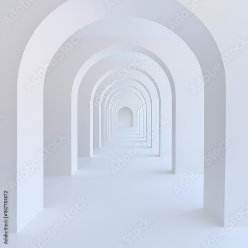 Modern Design: White Arched Passage Illuminated by Sunlight and Casting Shadows.