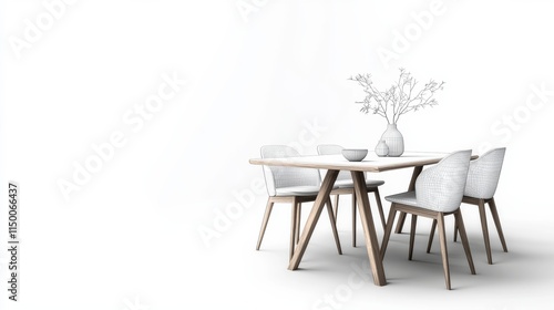 Modern dining table and chairs with a transparency background minimalist design indoor setting light and airy concept