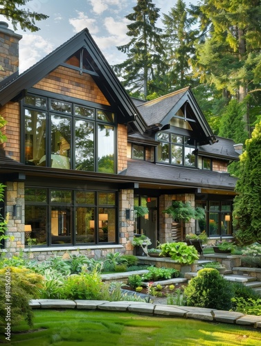 Modern Elegance: Captivating Home Design with Contemporary Exterior, Spacious Windows, and Lush Garden Oasis