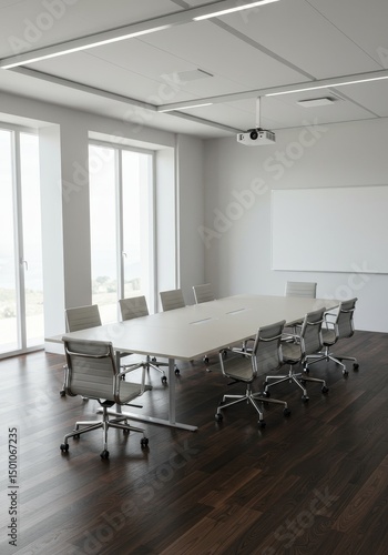 Modern Empty Conference Room with White Walls and Wooden Floor Photo