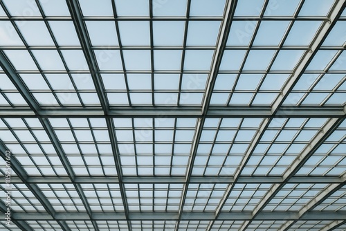 Modern glass grid ceiling structure with geometric pattern and natural light creating an abstract architectural background composition. Ai generative