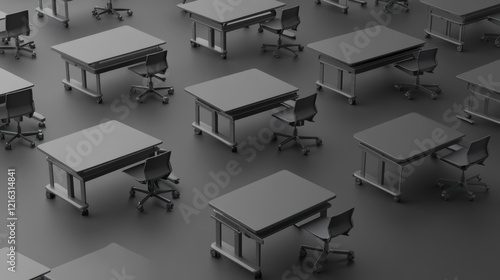 Modern Gray Office Desks Chairs Minimalist Design Workspace