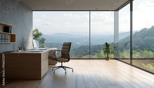 Modern Home Office with Mountain View