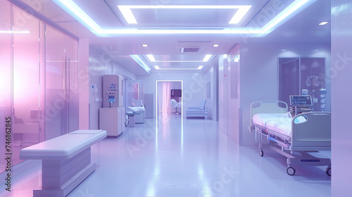 Modern Hospital Set with State-of-the-Art Equipment, Operating Rooms, and Patient Rooms. Concept of Healthcare and Medical Advances.