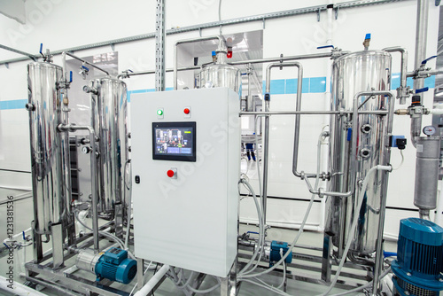 Modern industrial machinery in a clean facility for processing and manufacturing products in an advanced factory setting