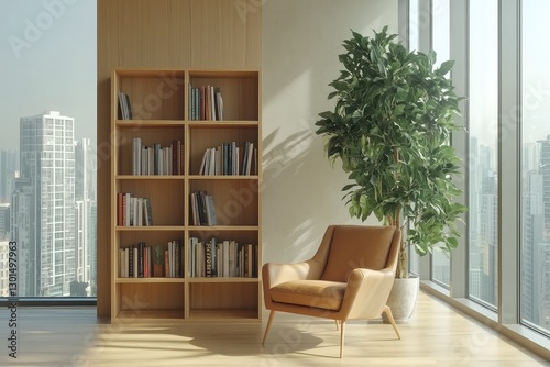 Modern interior with a frame and minimalist design elements. AI generated illustration.