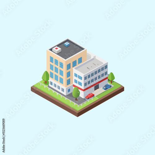 Modern Isometric Hospital Building